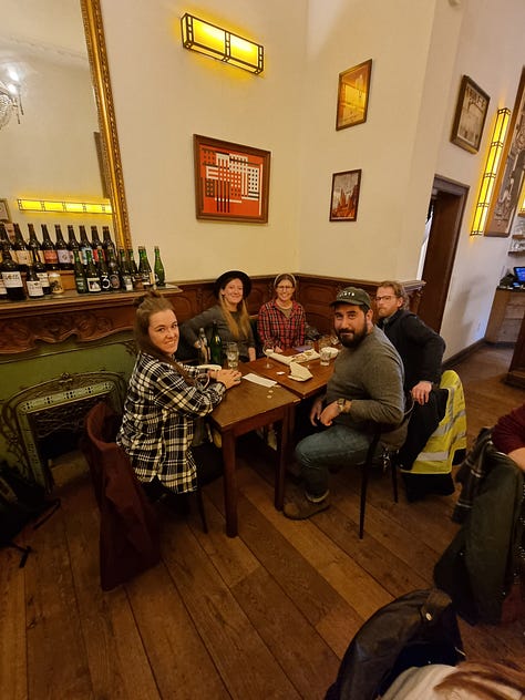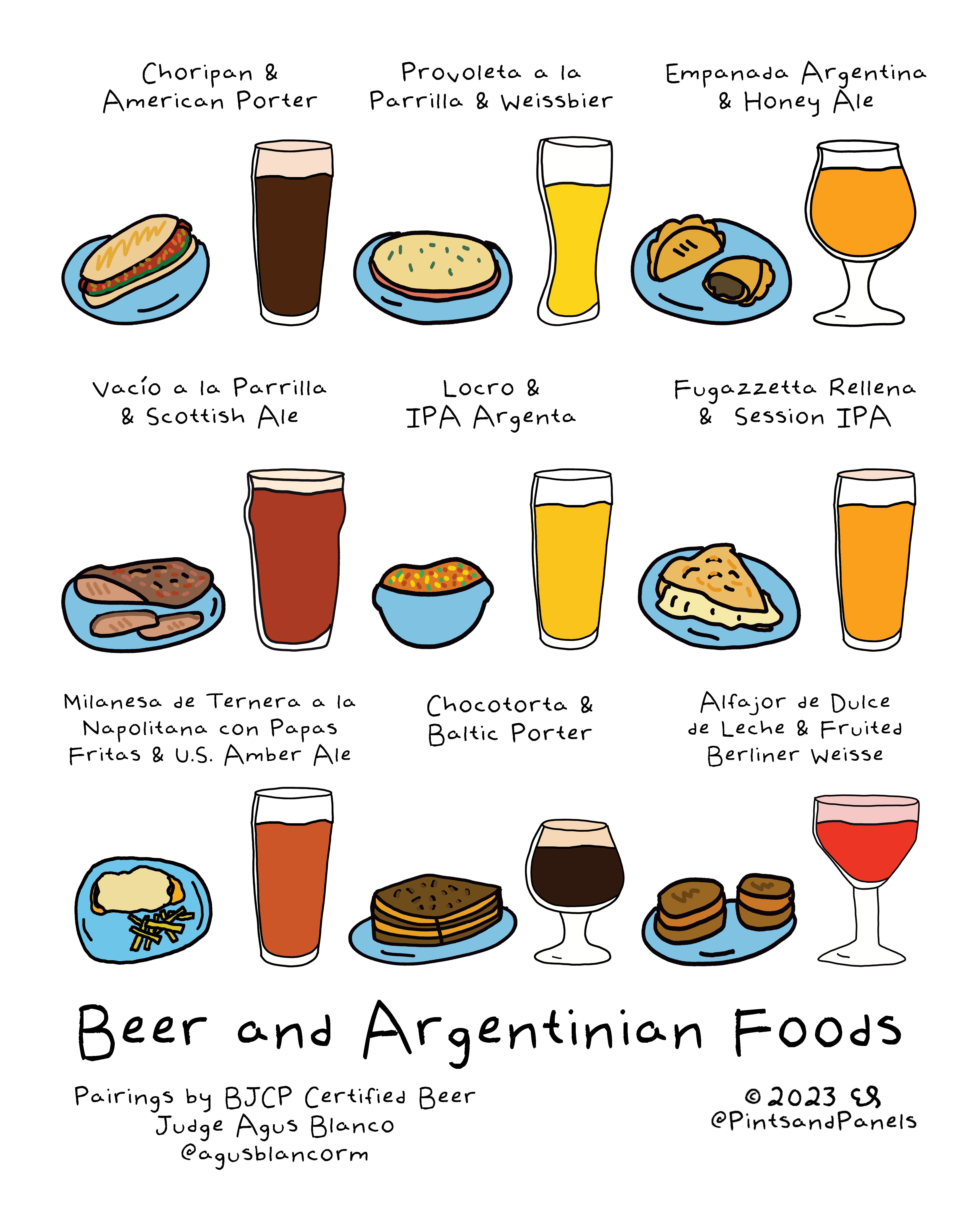Em es ilustradora en los 3 sentidos que la RAE define esta palabra (el tercero es Adornar un impreso con láminas o grabados alusivos al texto). Nos conocimos compartiendo unas cervezas en el lobby de un hotel en Eupen, Bélgica. Luego tuve la oportunidad de compartir con ella en Sudáfrica, por correo, mensajes y hasta pude colaborar en esta ilustración de maridaje de cerveza con platos argentinos =)